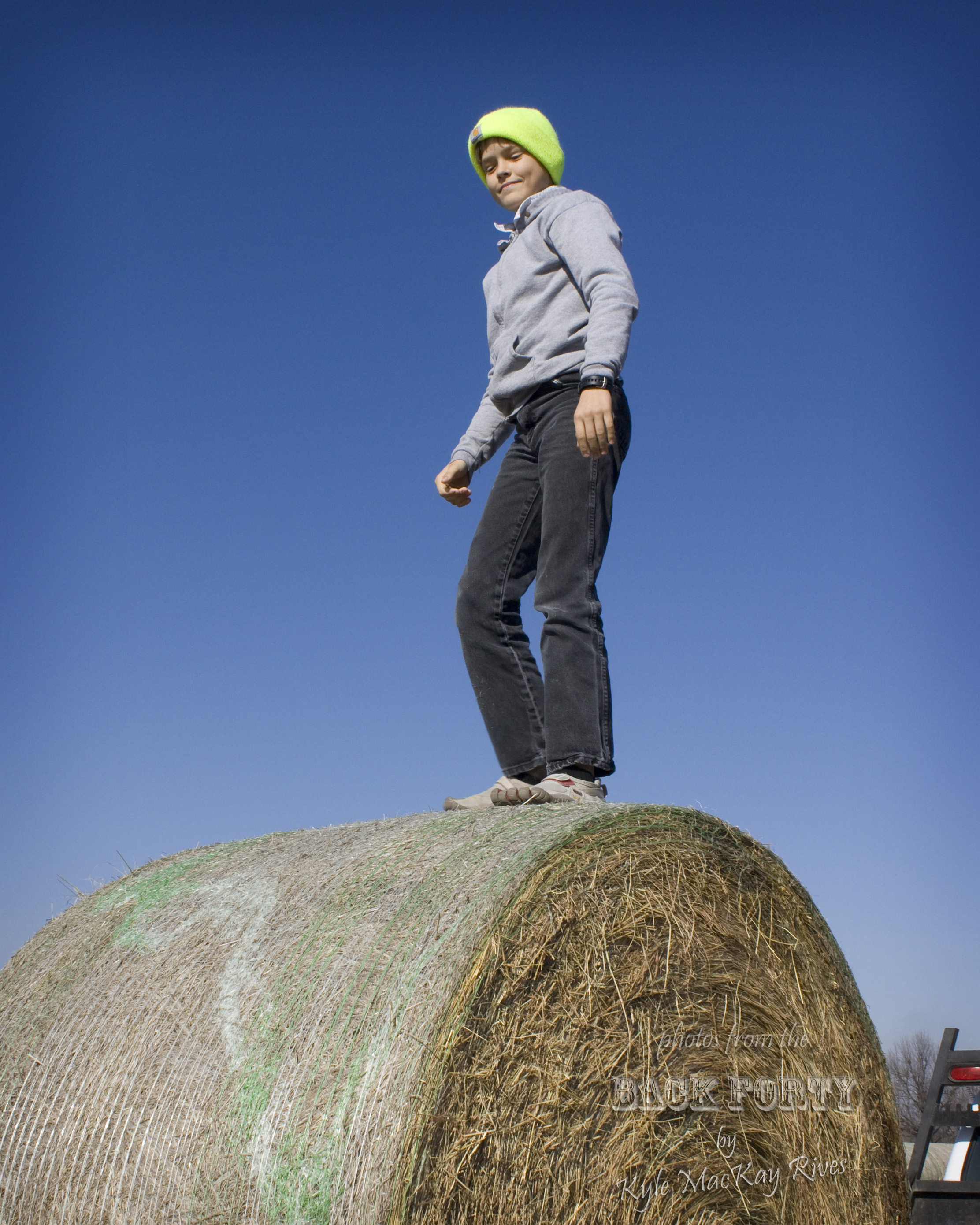 Bridger leapt up on top of this five foot diameter roll of grass as soon as it was loaded on our trailer. How could he have resisted?