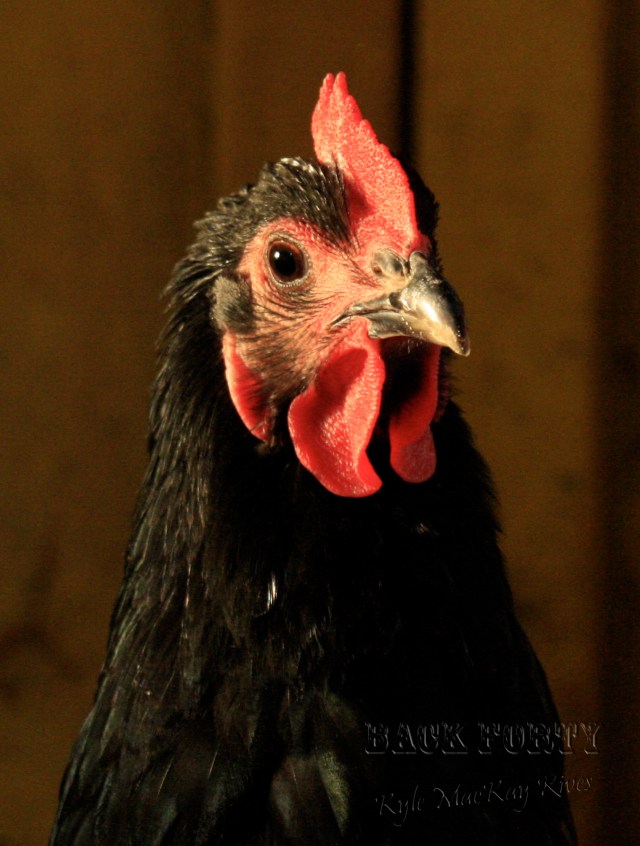 Actually, this is one of Bridger’s black hens. He really likes his Black Giant hens; they are good layers, very friendly, and forage for themselves. Or, they are willing to follow him around hoping for handouts! Bridger is known to share muffins, sandwiches, apples, cantaloupe… pretty much anything he is eating he will share with a nearby hungry hen π