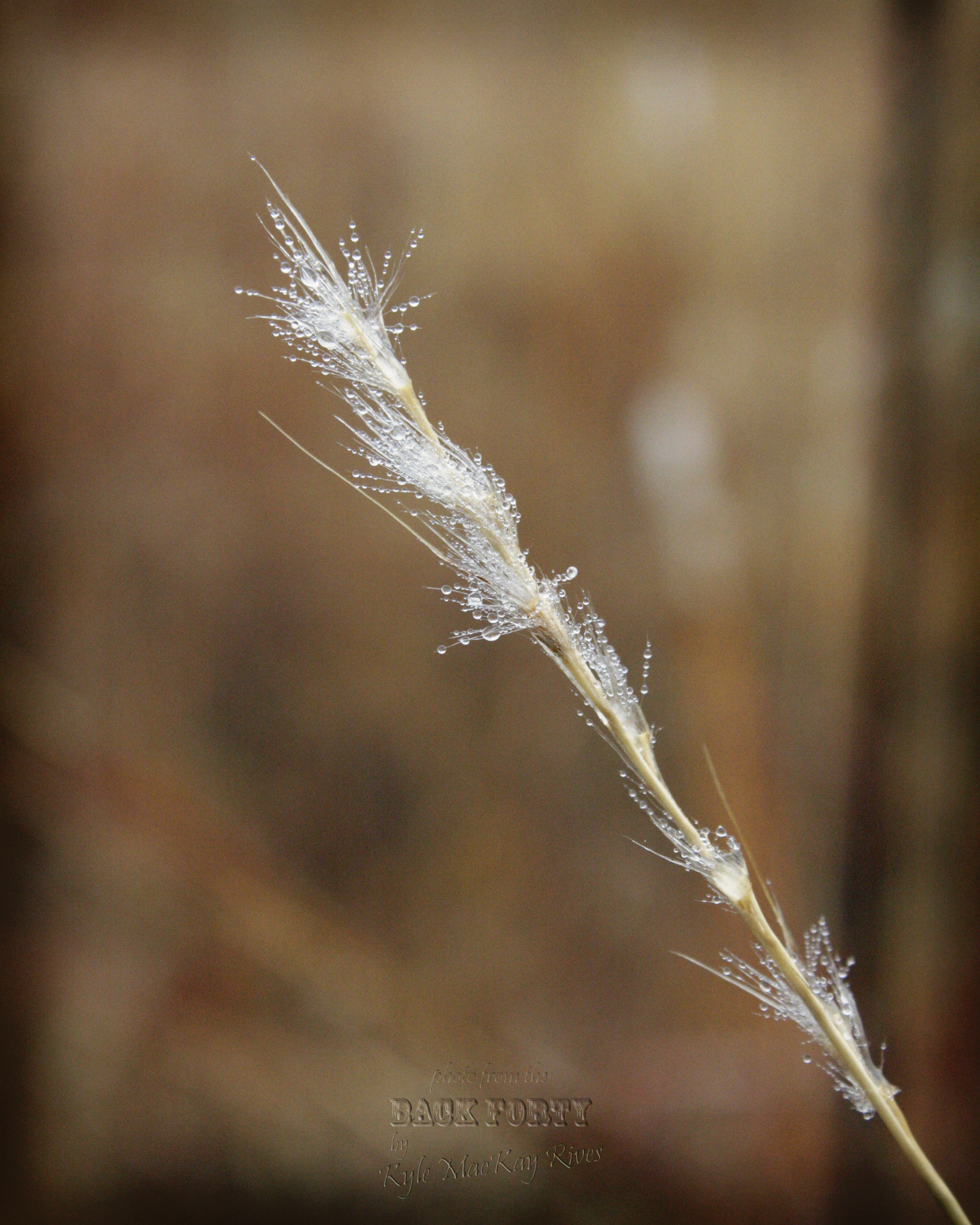 Zooming in on the gold, sunset-lit filaments of this grass seed head, I saw an anomaly.