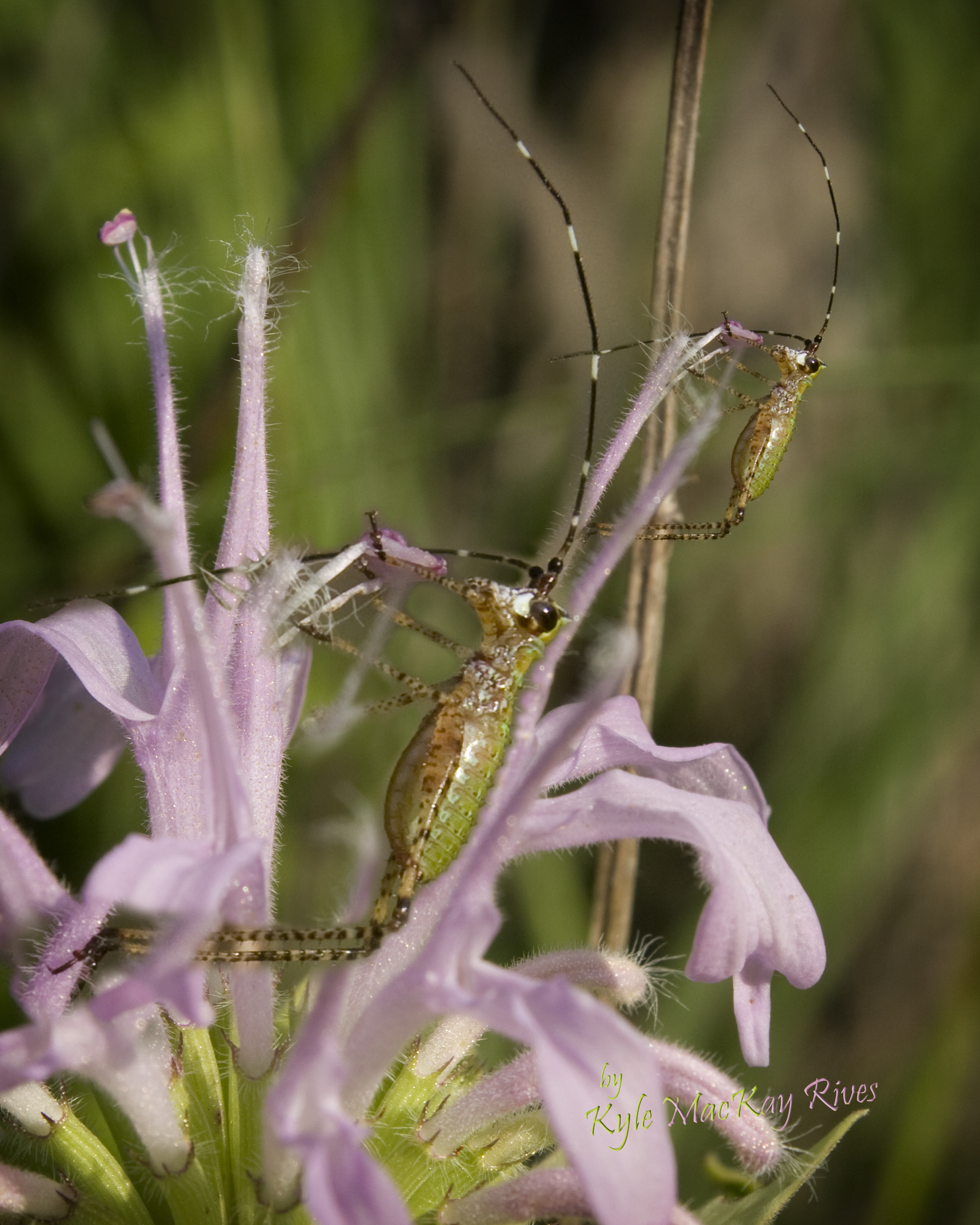 I started out focusing on a patch of lavender-pink Bee Balm (I think that’s what the flowers are), seeking to capture the glow of sunlight through their translucent petals. Then I noticed perfectly camouflaged little insects, their green the color of the leaves, their pink matching the petals, and their graceful black-and-white striped antennae seeming extensions of the flowers’ own reaching stamens.
