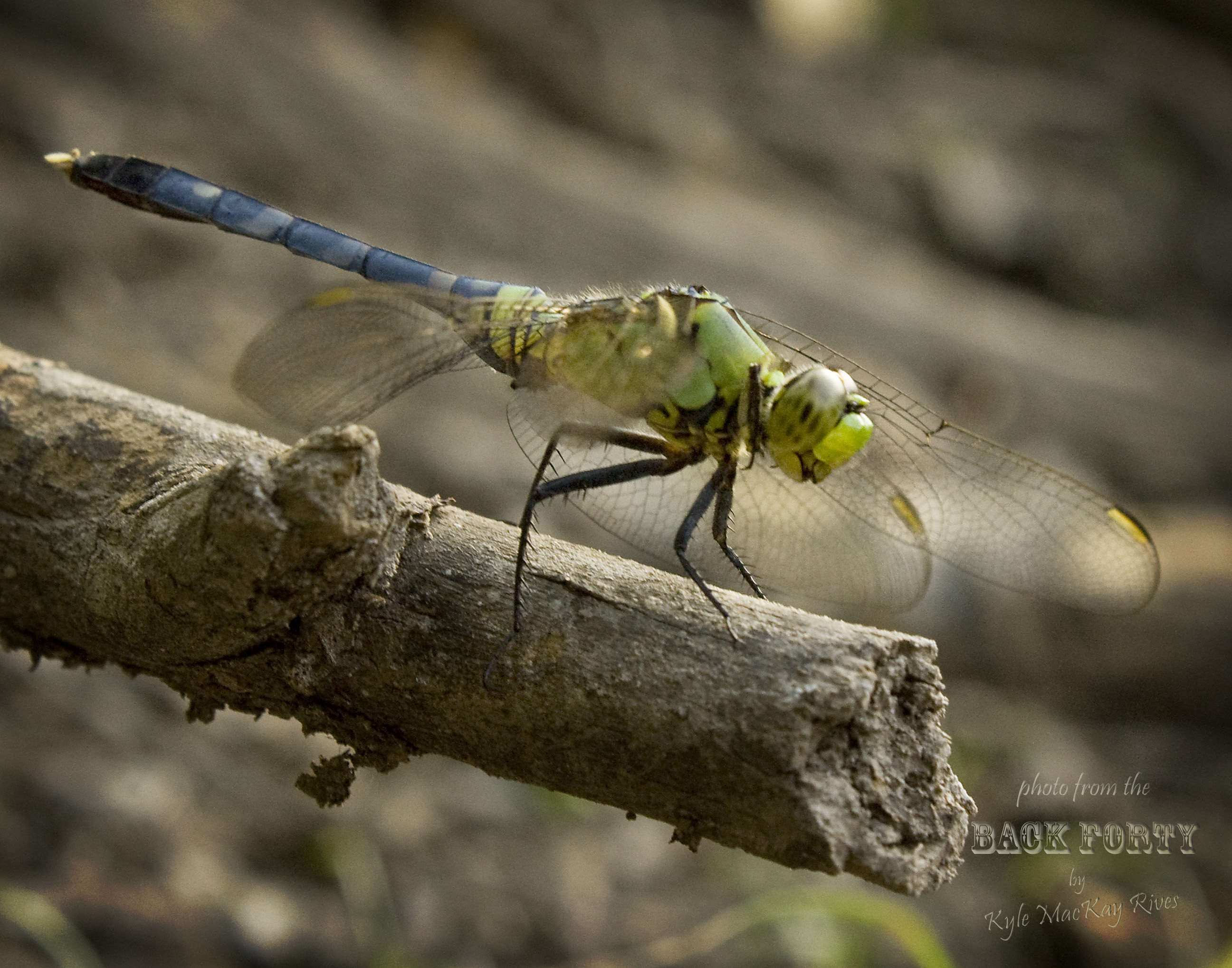Yet another flashback photo, again of a dragonfly. I think this is my favorite dragonfly photo! He is nearly camouflaged, but so sharp and clear. You can tell it was early morning, before the dew burned off, which may be why he was not as busily flitting around on dragonfly business as they usually are.