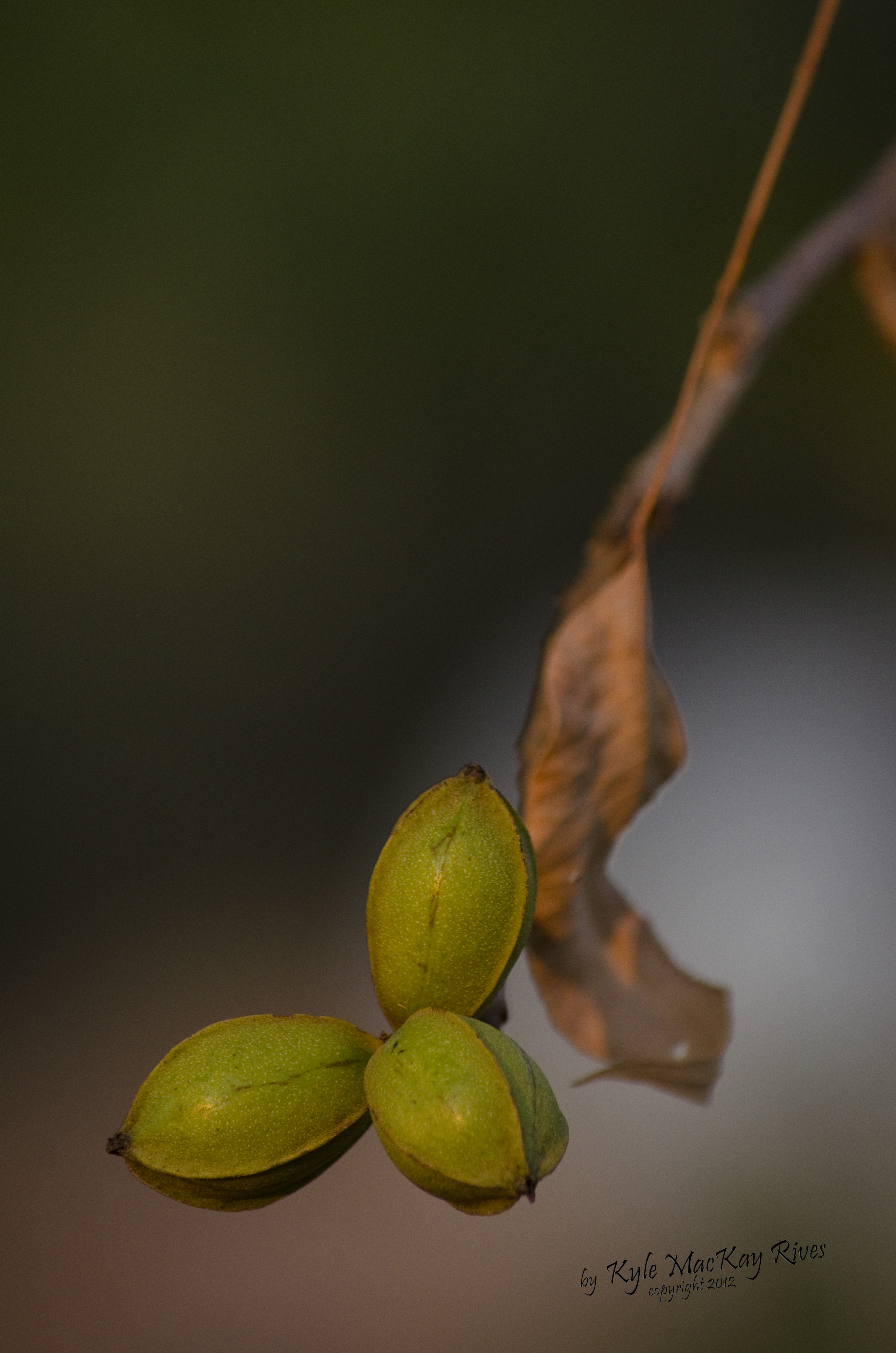 I was out at sunrise the other morning, watering the little fruit trees. These bright orange-yellow galls caught my eye. Their color is certainly enhanced by the glow of sunrise, and that is part of what caught my eye, but what I like the most is their attitude of leaning in toward each other, and the appearance of being cradled by the leaf.
