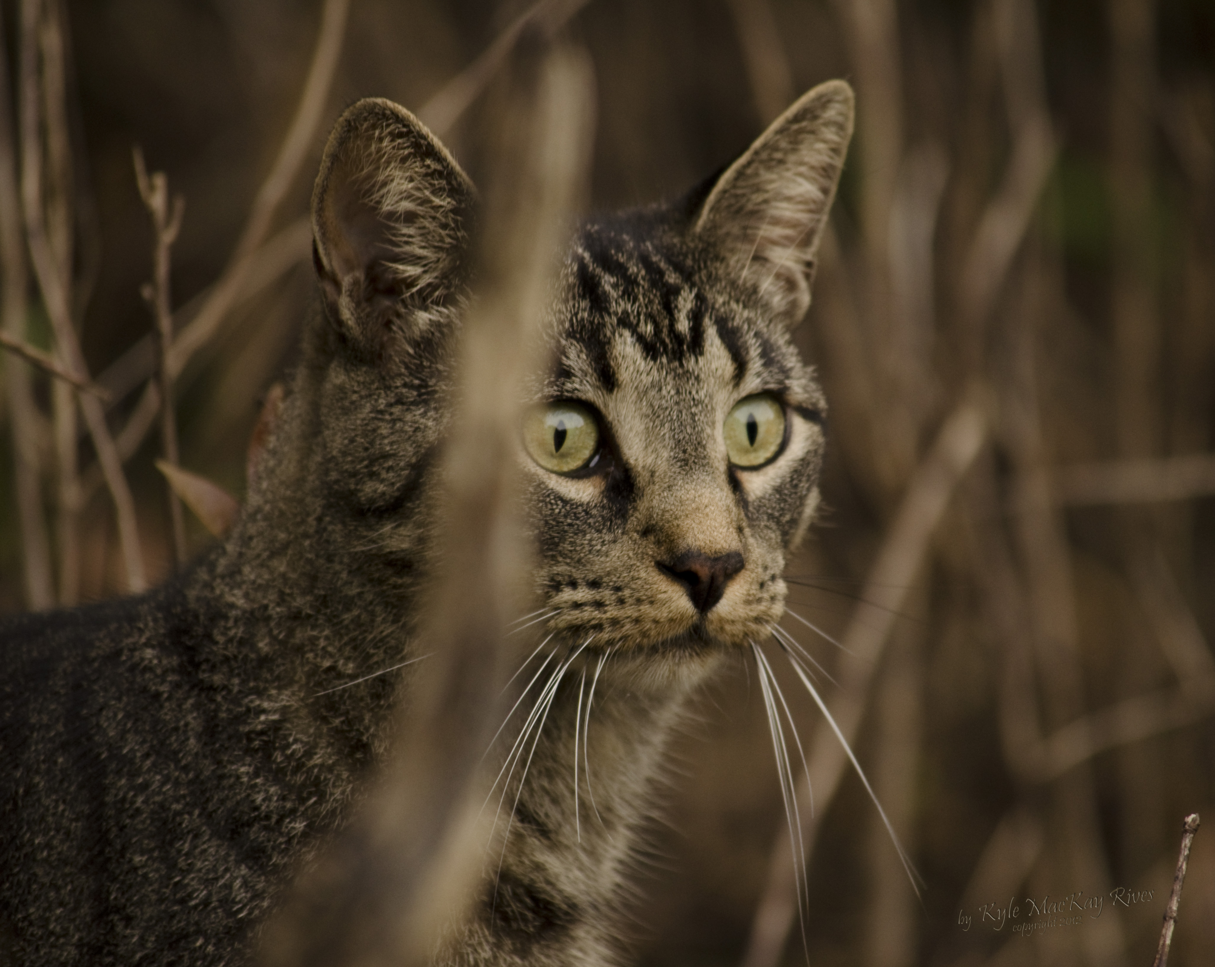 Tiger is sure you have noticed that he is also infinitely more photogenic than a mere brindle dog, although he acknowledges that it is occasionally necessary to shoot her, too, if only to assure her protection from coyotes and other dangers. He does consider Buttercup a friend. A useful, large friend. Just not quite as good a photographer’s model as a green-eyed tiger cat.