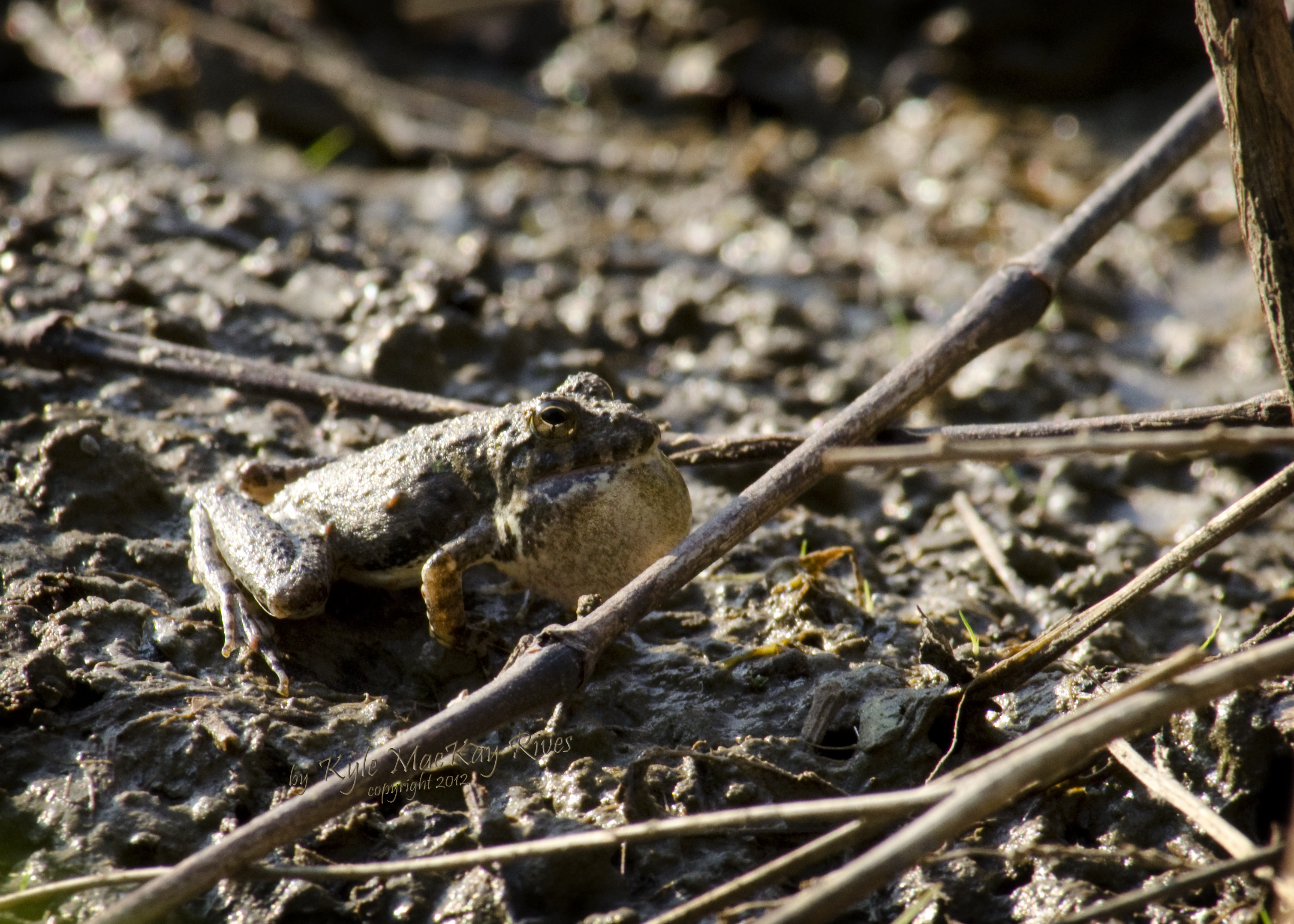 I was actually watching him, and not moving, when he began his little toady rhythm section. After my first photo I moved the camera. He instantly froze, little pouch still distended but not making music any longer. It deflated ever so slowly as he held perfectly still waiting for the danger to pass. Finally he concluded that I must have just been a bush swaying in the breeze… Well, I don’t know what he thought, but he resumed his interrupted serenade.